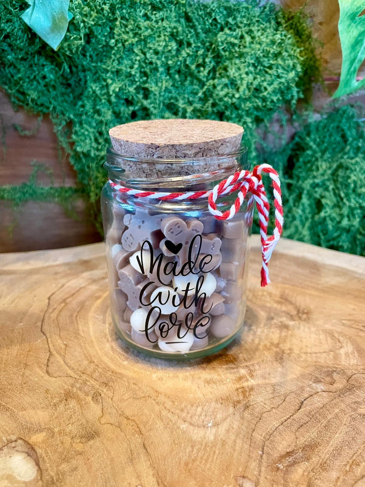 Bringen Sie festliche Wärme in Ihr Zuhause mit unseren Lebkuchenmann-Waxmelts im charmanten Korkenglas. Jedes Melt verströmt den authentischen, würzigen Duft von frischem Lebkuchen – ein Klassiker der Weihnachtszeit. Das stilvolle Behältnis mit Korkenverschluss bewahrt die Melts frisch auf und macht eine wunderbare Dekoration für Ihr Regal oder Ihre Kommode. Einfach in einer Duftlampe schmelzen und die gemütliche Atmosphäre genießen. Ein hochwertiges Produkt für alle, die das echte Weihnachtsgefühl lieben und ihre Räume mit zeitlosem Aroma erfüllen möchten.